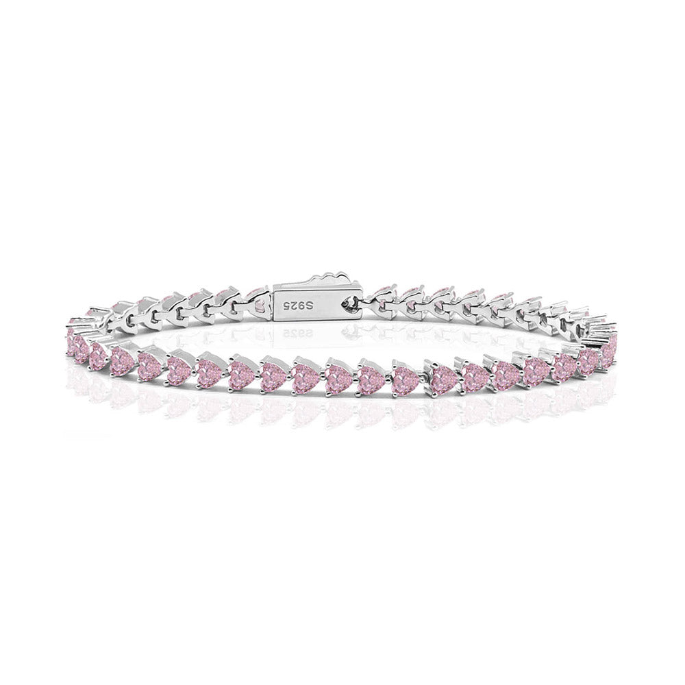 繊細な多角度ブリリアントカットのハートICE CARATを、全面360度にわたり職人の手で丁寧にプロングセッティングしたテニスブレスレット