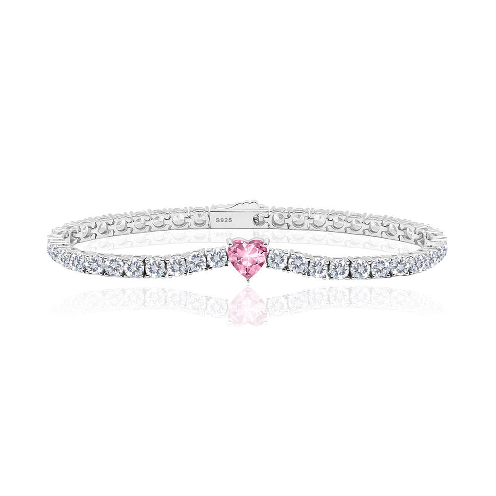 Ice single pink heart tennis bracelet (WG)